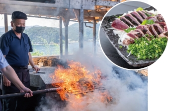 鉄柵(てっさく)に載せた鰹の身を激しい藁の炎にあて、ごく短い時間で焼くことが美味しさの秘密。表面だけに火を通し、中身をレアに仕上げることで旨味を封じ込めるのだ。鰹は藁の香りを程よくまとい、食欲をそそる。太平洋を一望しながらの藁焼き体験、そして味わう本場の鰹のタタキは、忘れられない旅の思い出になるにちがいない。