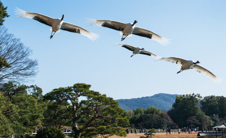 また、散策路での眺めも、秋のライトアップ期間ならではの魅力を堪能することができます。園内の歴史ある建物と織りなす風景美や、偃月橋から眺める南湖の様子、それぞれの木々によっての色付き方の違いなど、どこを切り取っても一つの絵になるのが栗林公園が「お庭の国宝」と言われるゆえん。まさに「一歩一景」を楽しめるのが、栗林公園散策の魅力です。是非ご堪能ください。