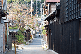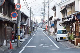出雲街道の宿場町だった頃の面影が残る城東地区。和蘭堂ではカフェや津山の民芸品販売、観光案内も行っている。