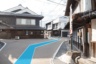 出雲街道の約3.6kmの間に18か所の曲りがある。大曲りは現在建物の角が落とされ、先が少し見えるが、以前は見えなかった。大曲りからさらに東の荒神曲りまでの直線に大名行列がおさまる。
