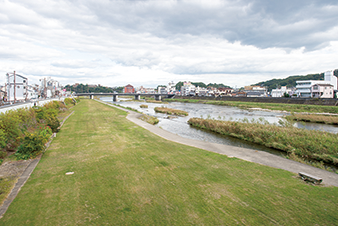 城下町をつくるにあたり、最初に手を付けたのが吉井川の治水事業。たびたび洪水を起こしていたため堤防が築かれ、城下町に水が入らないように「なげ」と呼ばれる水制がつくられました。水の力を弱め、流れを変える働きがあり、当時の「なげ」が今も残されています。