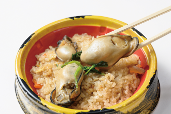 炊き込みご飯も絶品です。地元で愛される惣菜の店「まからずや」では、牡蠣小屋直送の新鮮な牡蠣を使った「寄島かきめし」を販売。牡蠣のおいしさを引き出すため、最初に牡蠣の身だけを煮て調理。その煮汁でご飯を炊き、仕上げに牡蠣をトッピングして、急速冷凍しネット販売を行なっています。電子レンジで温めていつでも炊きたての風味を味わえ、早崎店ではイートインができます。なお、牡蠣シーズン中の土曜日は、通常の牡蠣めしが販売されることもあり、こちらも楽しみです。
