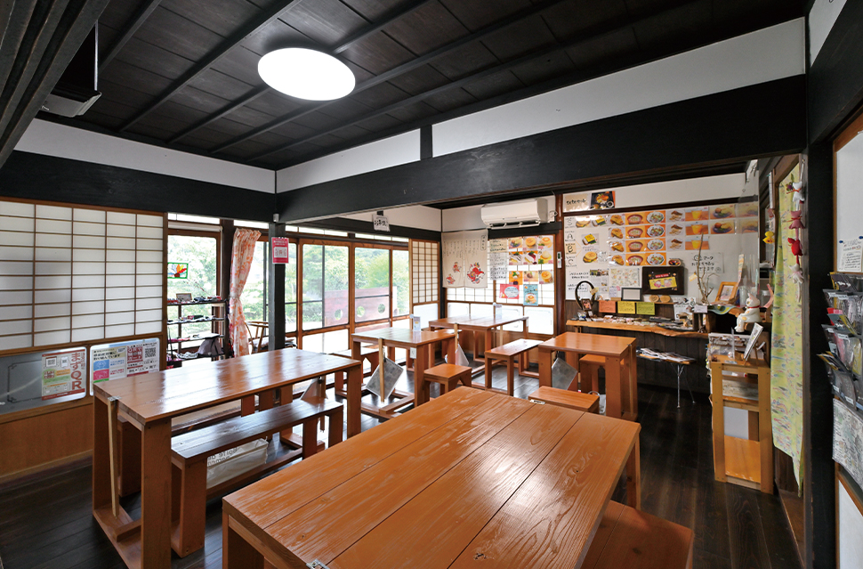 地元食材を豊富に使用した上蒲刈島と沖縄の融合料理を味わえるワンプレートランチのほか、自家養蜂の蜂蜜をたっぷりトッピングしたパンケーキや季節のオリジナルジュースなども人気。また、広々とした店内では工芸作家やアーティストの作品の展示・販売も行なっている。古民家ならではのノスタルジックな雰囲気に包まれながら、ゆったりとした時間を過ごしてほしい。