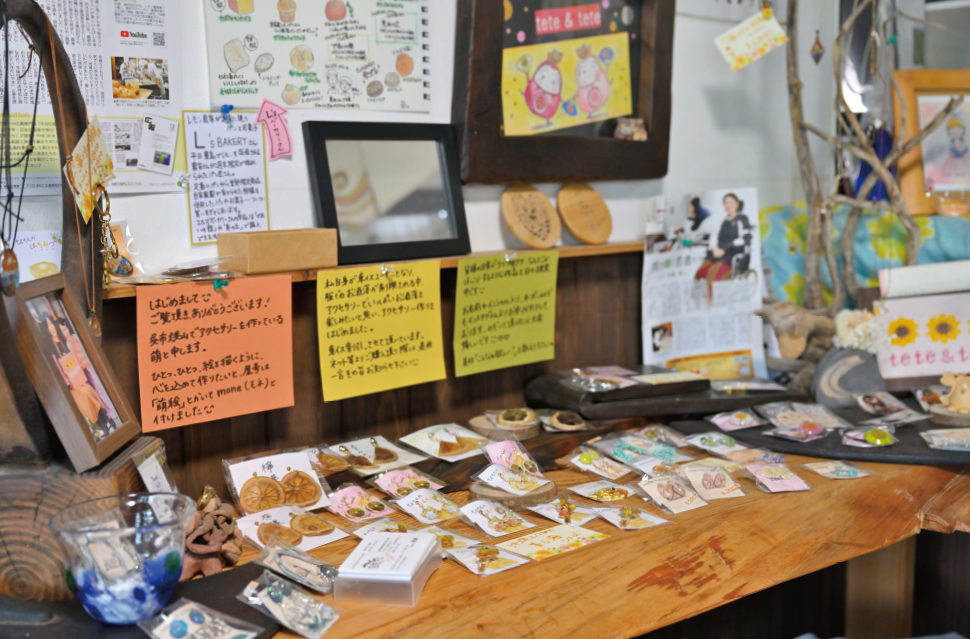 店内はほっと心が和む雰囲気。画家や工芸作家などによる作品の展示・販売も行なっている。