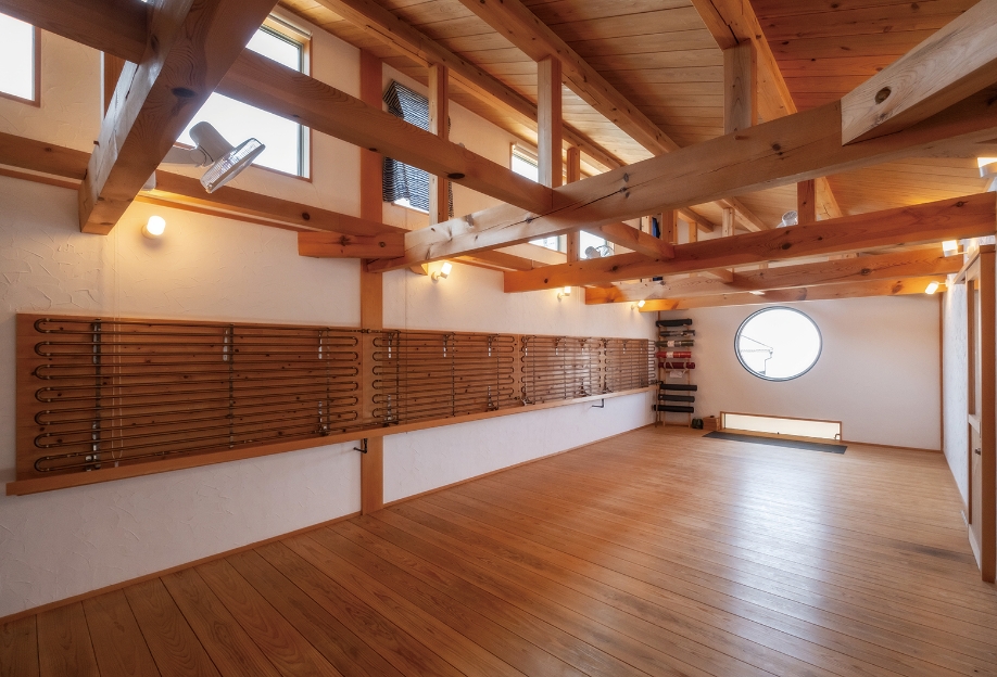 幼い頃、体が弱かった小岩井さんは、食への気遣いで体質を改善した。そこで、素材にこだわりつつ、何より「美味しい」と言ってもらえるパンづくりが信条。ベジタリアンやヴィーガン対応の商品も、大切にしているのは美味しさ。2階は維摩さんが主宰するヨガスタジオ「YUIMA YOGA」。スタジオの内装は無垢材や漆喰などの自然素材を用いており、壁面には「井戸水輻射冷房」を設置。