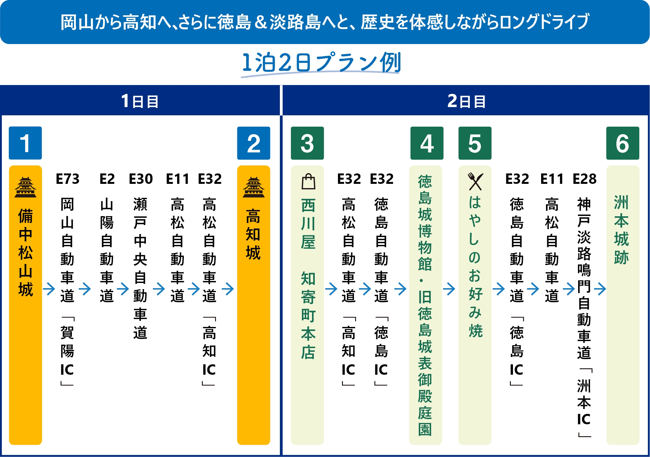 岡山から高知へ、さらに徳島&淡路島へと、歴史を体感しながらロングドライブ