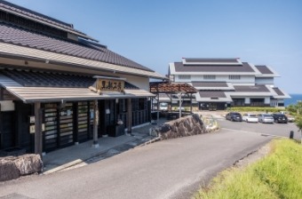 手前が黒潮工房、奥に見えるのが鰹乃國の湯宿 黒潮本陣。立ち寄り入浴も可能だ
